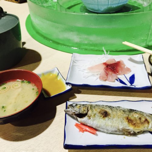 そうめん流しとマスの塩焼きと鯉こく、鯉のあらい