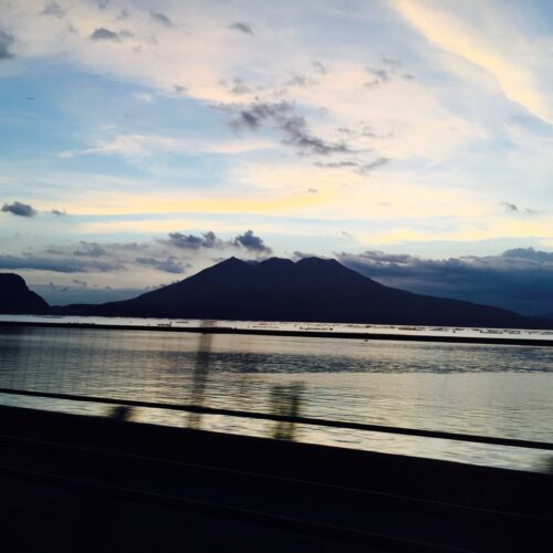 夕方の海と桜島